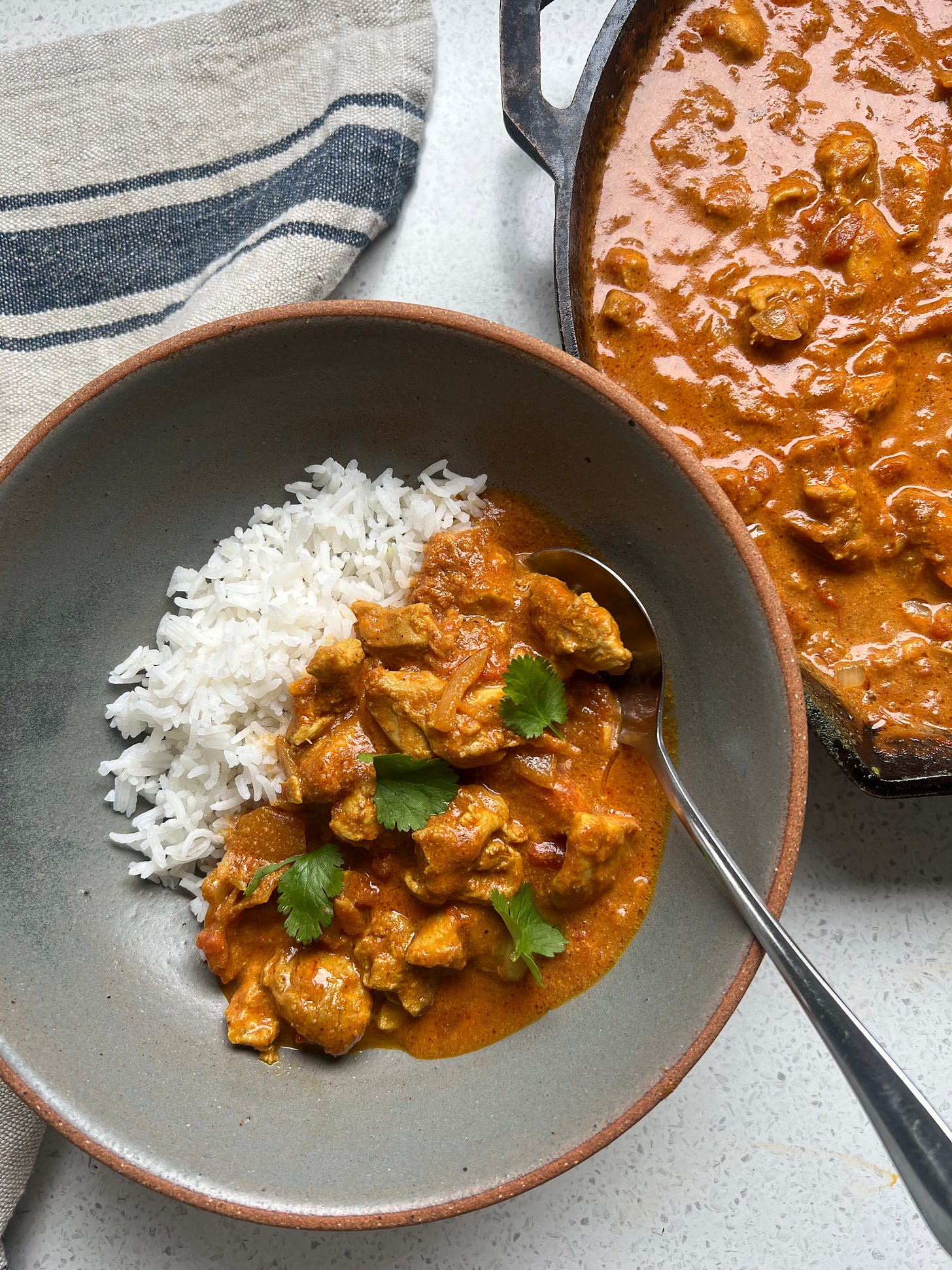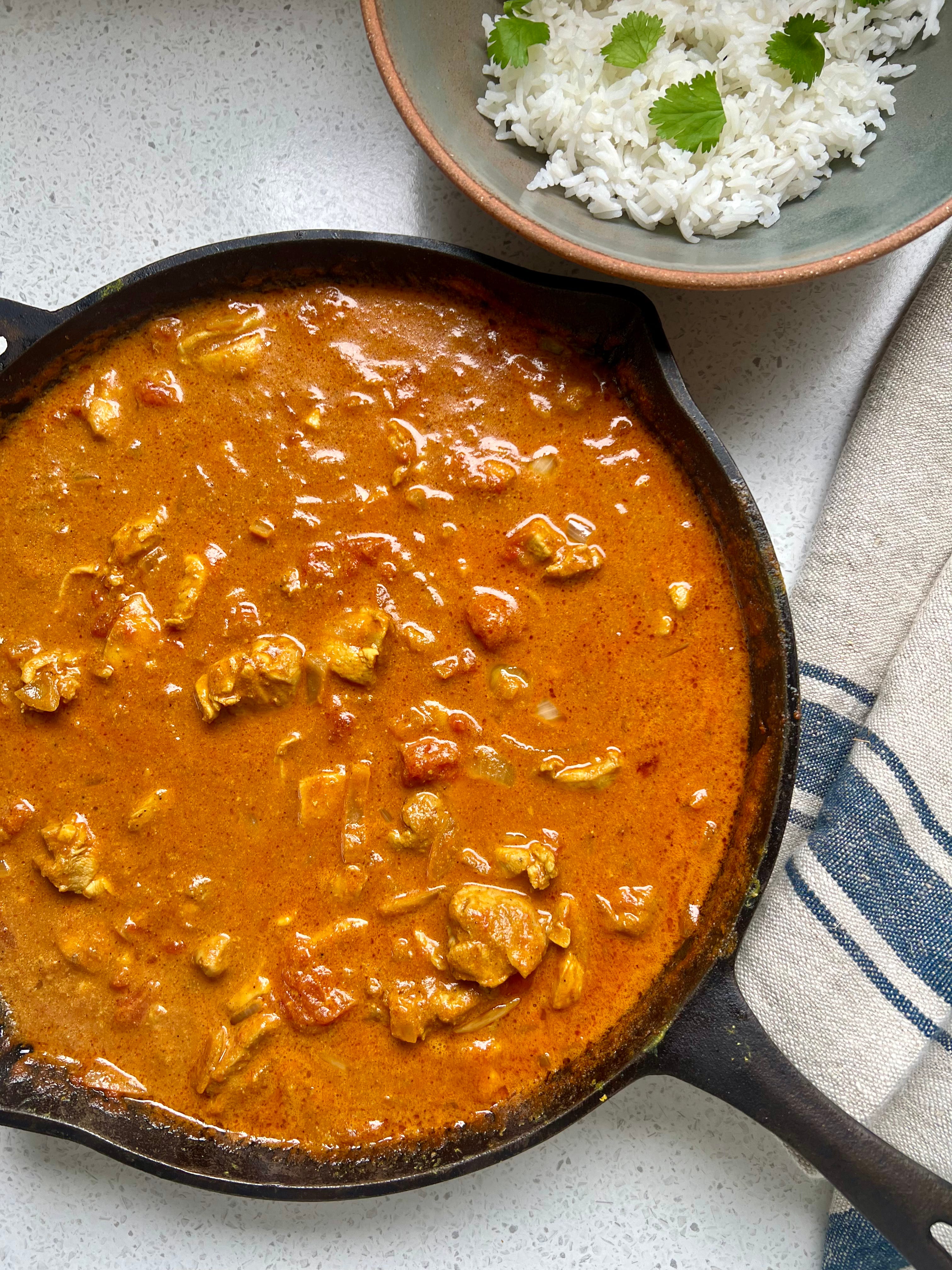 This week I’m sharing a super simple recipe with you that I have been tweaking for a while now. It is an easy Butter Chicken which is packed with so much flavour and really gives that fake-aways feeling. Once you marinate the chicken (which you can do the morning of), there honestly isn’t much more to do other than chop an onion. Maggie has always loved a curry, and this one would be up there with one of her favourites. Hope your family loves this one as much as we do.